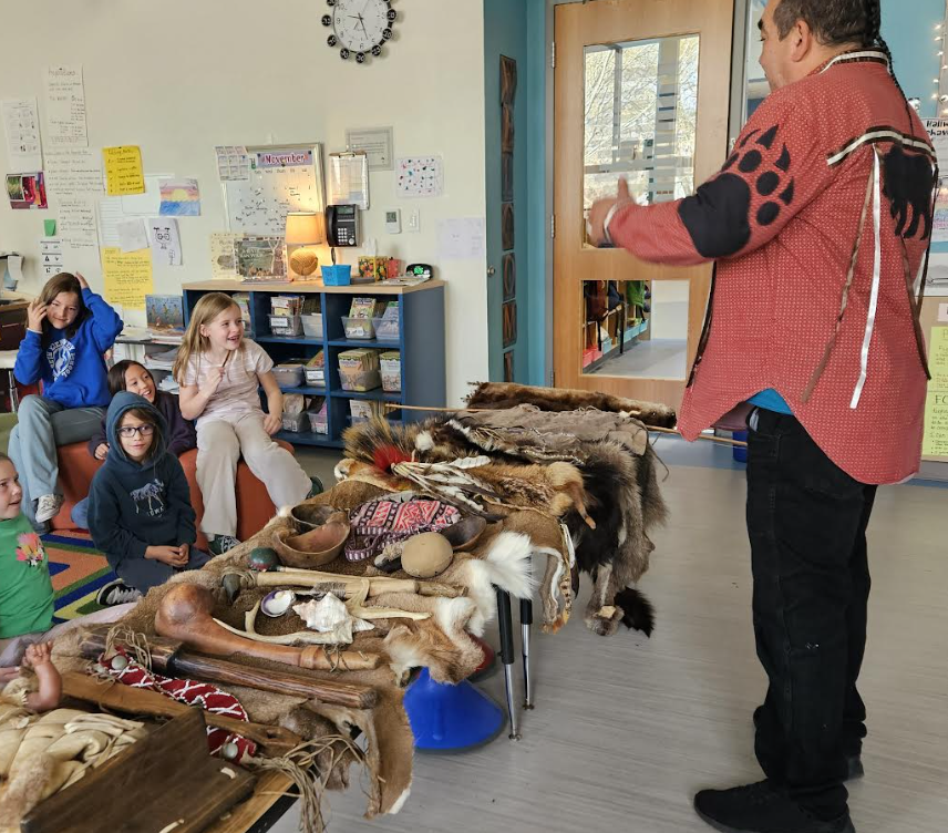 As part of their social studies unit, third graders had the privilege to learn from Darius Coombs, a Mashpee Wampanoag tribal citizen and Cultural Outreach Coordinator for the Mashpee Wampanoag Education Department. Thank you to the PTO for sponsoring this visit and to third grade teacher Reenie Durgin for organizing this important opportunity!