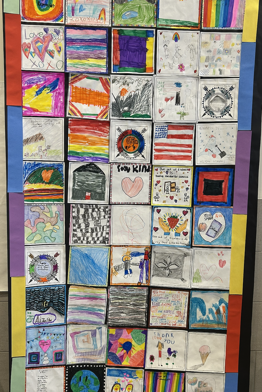 Our second kindness quilt is complete! Thank you to Liz Bala, Emily Fournier, and Claudia Owens for organizing and putting the quilt together. And of course, thank you to our creative and kind students for making these beautiful squares! This quilt will be donated to the Harvard Council on Aging.