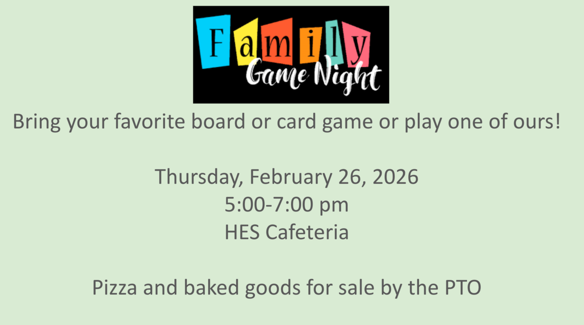 February vacation is next week! Please be sure to check out all the information below about the Readathon sponsored by the PTO. In addition, once again 5th graders will leave their iPads in school over vacation. After break, we look forward to seeing you at our annual HES Family Game Night!